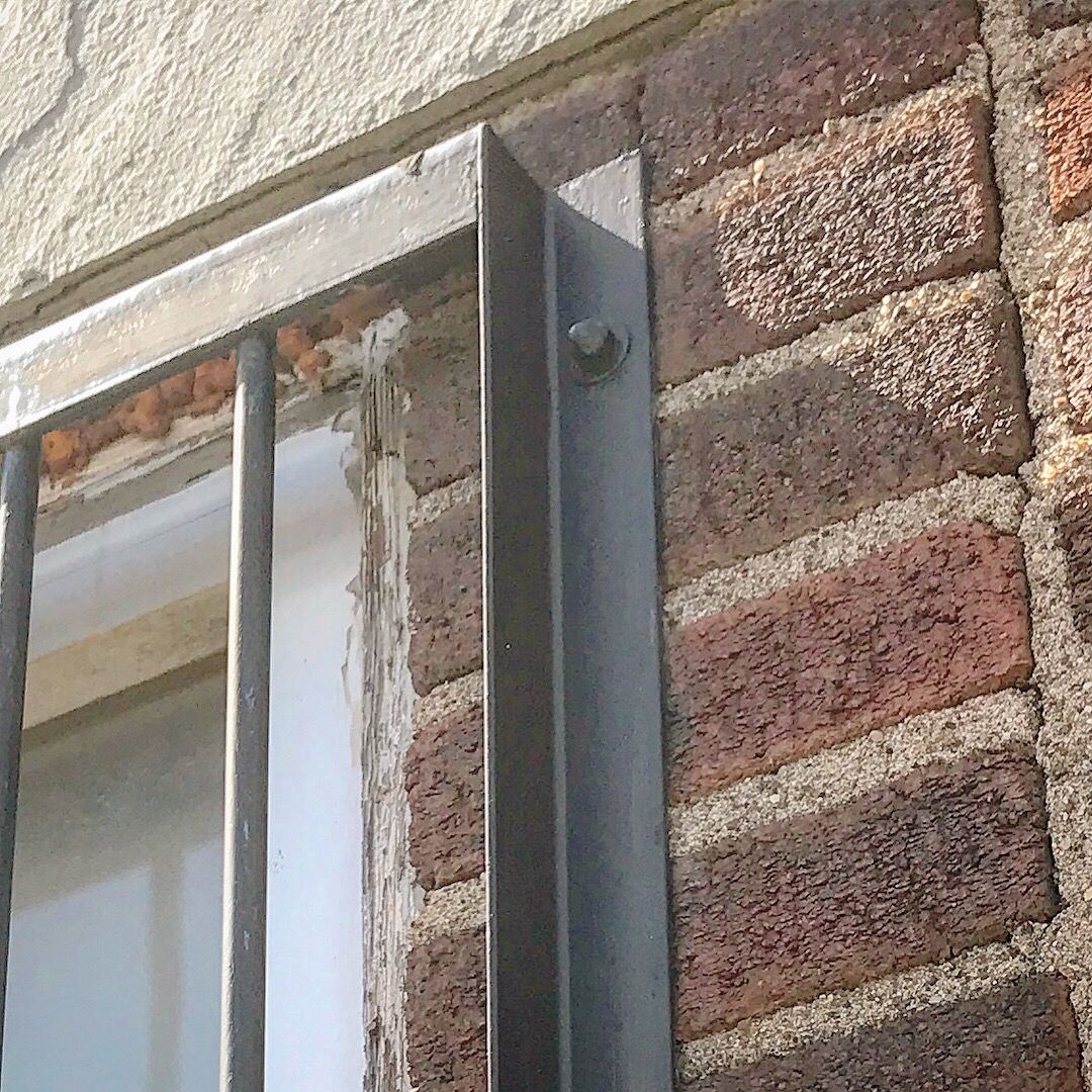 Sometimes you may be faced with clearing an egress point that is covered with bars. As a progressive RIT or Truck company you may use a variety of methods to open them up. A traditional method is to get the rotary saw and start cutting the bars. In this case you can take the entire frame out that is bolted to the wall. In the second photo you can get under the frame of the bars and pry with a halligan. Many times the hardware will be aged or already deteriorating.